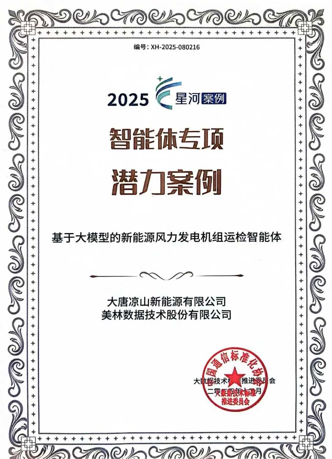 2025年12月18日,由中國(guó)通信標(biāo)準(zhǔn)化協(xié)會(huì)主辦的“2025數(shù)據(jù)資產(chǎn)管理大會(huì)”在北京隆重召開。會(huì)上,2025第九屆數(shù)據(jù)智能“星河”案例評(píng)選結(jié)果正式公布。大唐涼山新能源有限公司與美林?jǐn)?shù)據(jù)技術(shù)股份有限公司聯(lián)合申報(bào)的《基于大模型的新能源風(fēng)力發(fā)電機(jī)組運(yùn)檢智能體》從超930份申報(bào)項(xiàng)目中脫穎而出,成功入選智能體專項(xiàng)潛力案例,彰顯了大模型技術(shù)在新能源電力垂直行業(yè)的深度融合與創(chuàng)新應(yīng)用價(jià)值獲得認(rèn)可,為行業(yè)智能化轉(zhuǎn)型提供了可復(fù)制的實(shí)踐經(jīng)驗(yàn)。