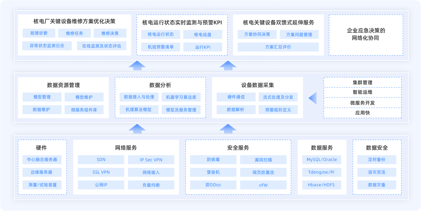 構(gòu)建面向機(jī)組實(shí)時(shí)運(yùn)行監(jiān)控預(yù)警、設(shè)備雙饋式服務(wù)、維修應(yīng)急決策全面協(xié)同的一體化核電運(yùn)維決策系統(tǒng)。通過設(shè)計(jì)、制造、運(yùn)營、服務(wù)等多源異構(gòu)數(shù)據(jù)的全面存儲(chǔ)和管理,如電廠PI系統(tǒng)、IETM系統(tǒng)、便攜式終端、循泵試驗(yàn)臺(tái)等集成,借助數(shù)據(jù)深度建模,實(shí)現(xiàn)對(duì)運(yùn)行狀態(tài)的評(píng)估以及運(yùn)維活動(dòng)的實(shí)時(shí)決策優(yōu)化,實(shí)現(xiàn)設(shè)備故障從“被動(dòng)反應(yīng)”到“主動(dòng)預(yù)防”的模式轉(zhuǎn)變,提升企業(yè)生產(chǎn)運(yùn)營的可靠性和安全性,助力提質(zhì)增效。