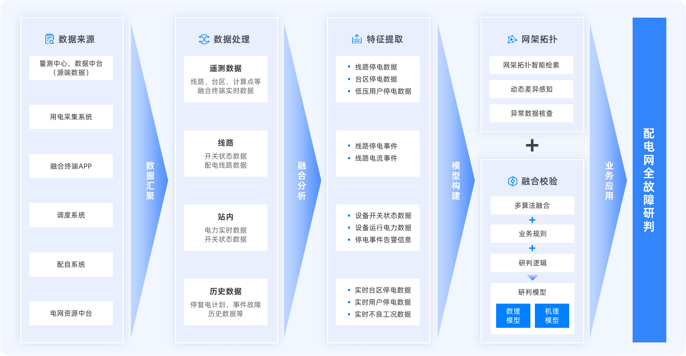 集成多系統(tǒng)技術(shù)優(yōu)勢,全量接入數(shù)據(jù)并融合分析,構(gòu)建動態(tài)拓?fù)鋱D,結(jié)合AI與機(jī)理模型校核,精準(zhǔn)定位故障,支撐全流程數(shù)字化管控。