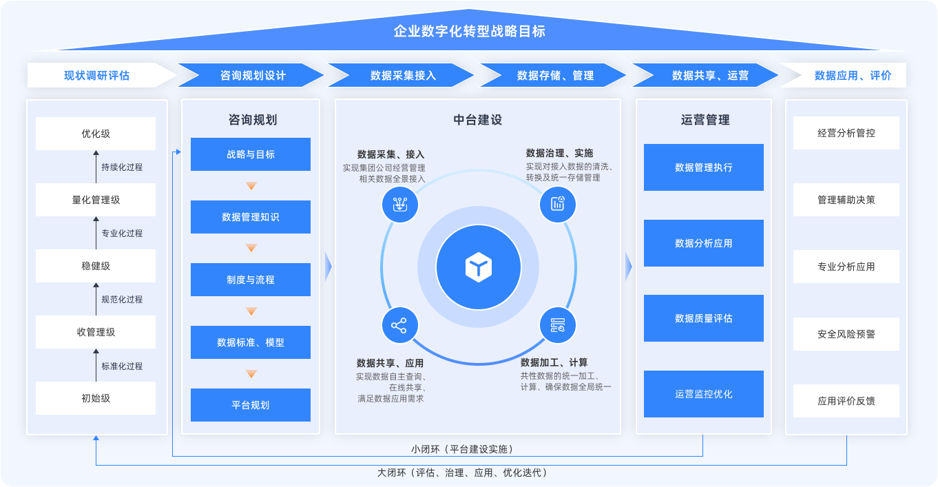 通過構建數(shù)據(jù)治理體系與數(shù)據(jù)中臺,實現(xiàn)集團數(shù)據(jù)標準統(tǒng)一、質量提升與跨系統(tǒng)融合,支撐業(yè)務創(chuàng)新與精準決策。強化數(shù)據(jù)安全與合規(guī)控制,培養(yǎng)專業(yè)團隊,確保數(shù)據(jù)管理長效良性運轉,全面提升集團管控業(yè)務與管理職能。