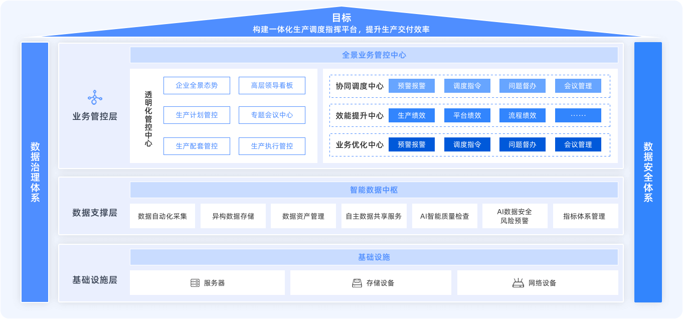 當(dāng)前粗放式的生產(chǎn)管理現(xiàn)狀,導(dǎo)致管理者難以全局掌控計(jì)劃執(zhí)行進(jìn)度、及時(shí)識(shí)別解決各類(lèi)異常,遑論均衡調(diào)度生產(chǎn)資源。亟需構(gòu)建一體化生產(chǎn)管控平臺(tái),深度集成銷(xiāo)售至發(fā)運(yùn)的主價(jià)值鏈,打通端到端數(shù)據(jù)驅(qū)動(dòng)體系,實(shí)現(xiàn)需求、資源與生產(chǎn)的動(dòng)態(tài)協(xié)同。以實(shí)現(xiàn)業(yè)務(wù)主價(jià)值鏈貫通、全局業(yè)務(wù)監(jiān)控、異常問(wèn)題快速處置,從而提升企業(yè)整體生產(chǎn)管理水平,提升價(jià)值創(chuàng)造能力。