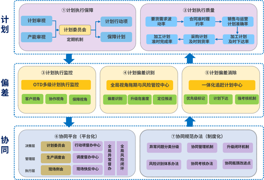 解決方案 以準時交付為目標,構(gòu)建計劃執(zhí)行管控、計劃偏差管控、異常協(xié)同管控為一體的管控平臺,基于計劃執(zhí)行管控實現(xiàn)生產(chǎn)過程多層級計劃的執(zhí)行跟蹤,實現(xiàn)生產(chǎn)過程透明化管控;基于計劃偏差管控實現(xiàn)計劃偏差識別與預(yù)警、消除,確保計劃按期執(zhí)行;基于異常協(xié)同管控,通過建立協(xié)同平臺與協(xié)同機制等實現(xiàn)異常問題快速處置,從而實現(xiàn)過程有跟蹤、偏差有預(yù)警、計劃有保障的過程式生產(chǎn)管控,全面確保準時交付。