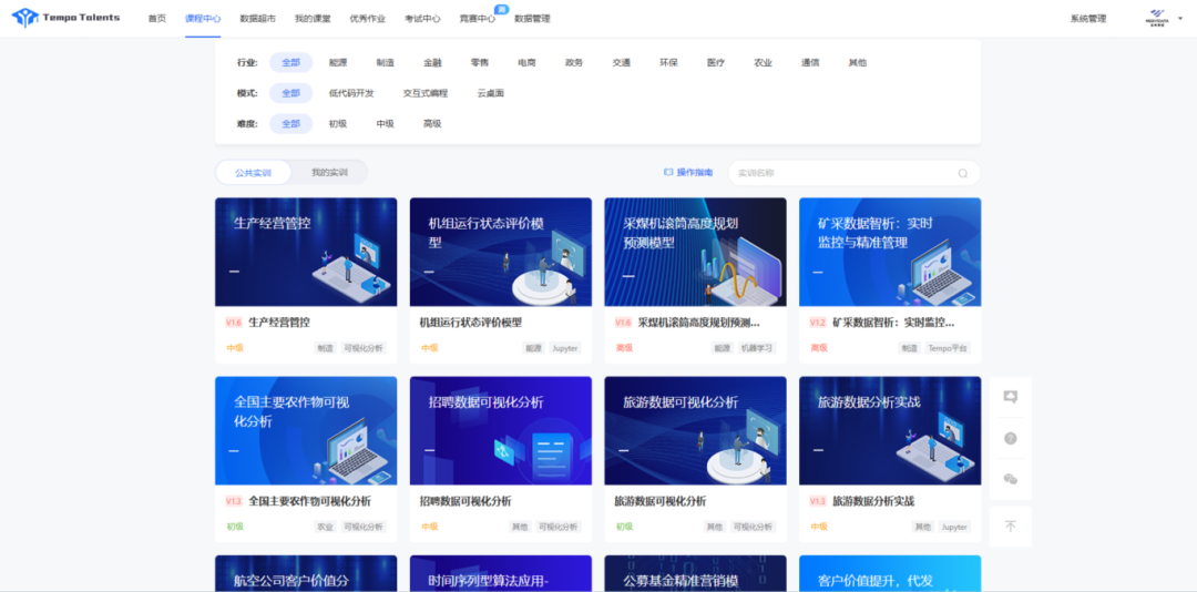 應(yīng)用實(shí)訓(xùn)案例覆蓋了能源、制造、金融、零售、電商等多個(gè)行業(yè),支持低代碼開(kāi)發(fā)、交互式編程、云桌面等多種的實(shí)驗(yàn)?zāi)J?,為不同方向、不同學(xué)科的學(xué)生提供了大數(shù)據(jù)實(shí)踐機(jī)會(huì),使他們?cè)趯?shí)際操作中深化理論知識(shí),提升技能水平。