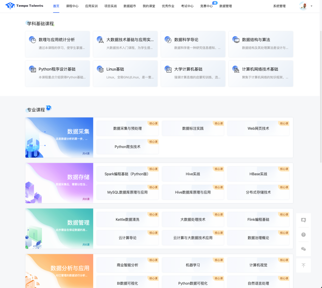 實訓(xùn)平臺通過一個完整的項目案例實戰(zhàn),讓學(xué)生身臨其境的了解產(chǎn)業(yè)數(shù)字化轉(zhuǎn)型過程中數(shù)據(jù)治理的全流程,理解數(shù)據(jù)治理戰(zhàn)略的意義和目標(biāo)、實踐數(shù)據(jù)資產(chǎn)采存管用全流程,在項目應(yīng)用過程中將所學(xué)知識、技能進(jìn)行綜合應(yīng)用,基于項目實戰(zhàn)培養(yǎng)學(xué)生問題求解能力。
